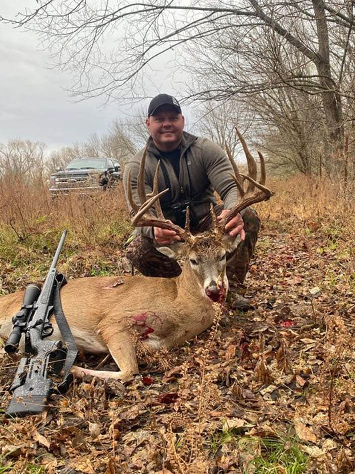 This amazing, massive buck of a lifetime stood just 160 yards away. There was no doubt, it was him! I was hunting with a 28 Nosler that morning. I made the shot and saw the deer run off and disappear into the brush. I was pretty sure I’d made a good shot, but got down and followed the trail of blood painted on the ground which led me to my “buck of a lifetime.” I’ve been an avid hunter for over 2 decades and hunted all over the United States, but never have had the opportunity to kill such a magnificent animal!