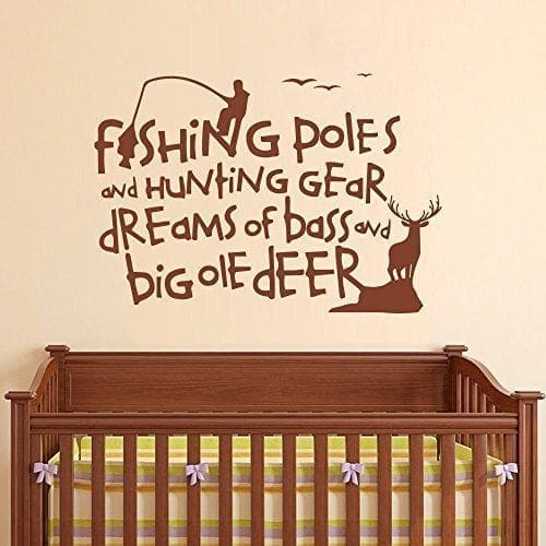 Fantastic handmade decal!!Country Wall Decals Quotes Fishing Poles And Hunting Gear Dreams Of Bass And Big Ole Deer Wall Decal Bedroom Nursery Living Room Art Sticker.Brought to you by The Decal Lab!See the color chart for your options. The photographs are for a reference be sure to use the measurements when ordering.