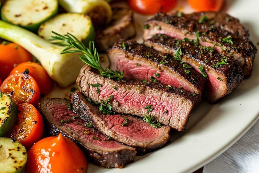 - Slice the venison steaks against the grain and serve alongside the roasted vegetables.