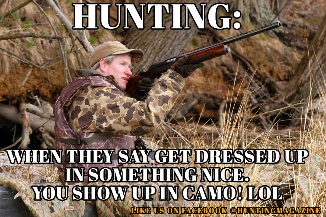 Hunting Meme: Hunting – When they say get dressed up in something nice. You show up in camo!