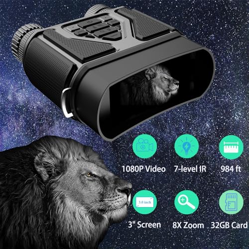 - 【Best Gifts for men-Night Vision Goggles】: Equipped with a 3-inch large TFT screen, you can view naturally crisp and vivid photos instantly. With these night vision binoculars, you can even track targets 984ft/300M far away in 100% darkness by using the 8X digital zoom and get a clear viewing via its 25mm objective.
