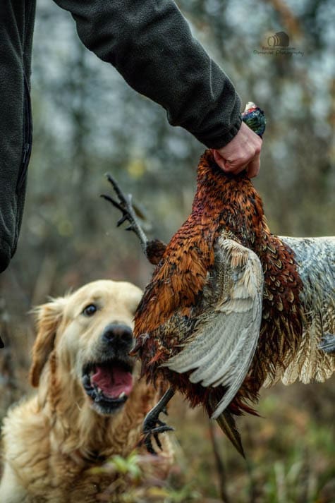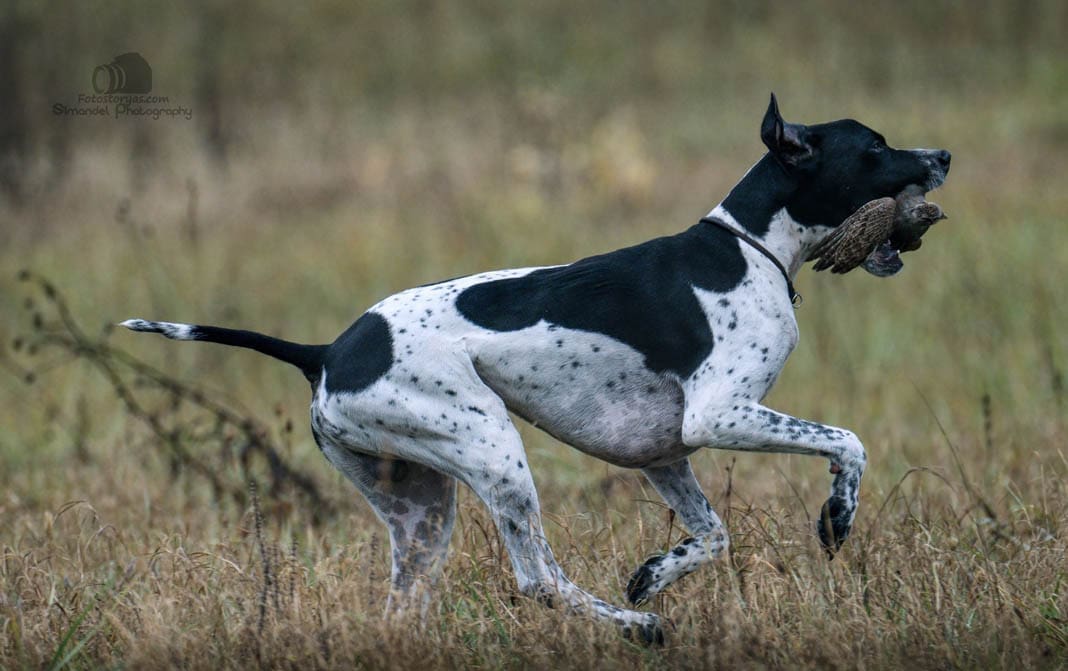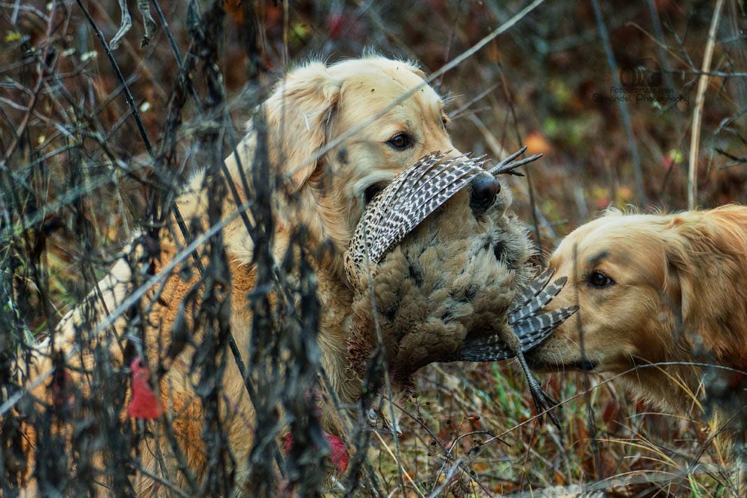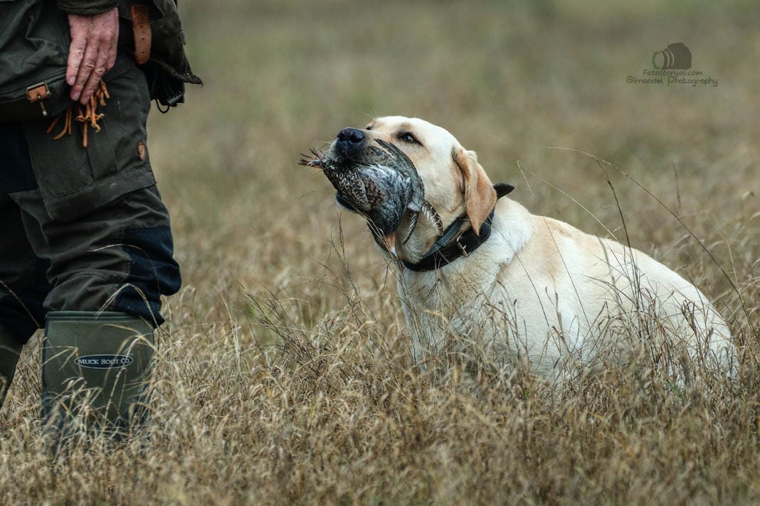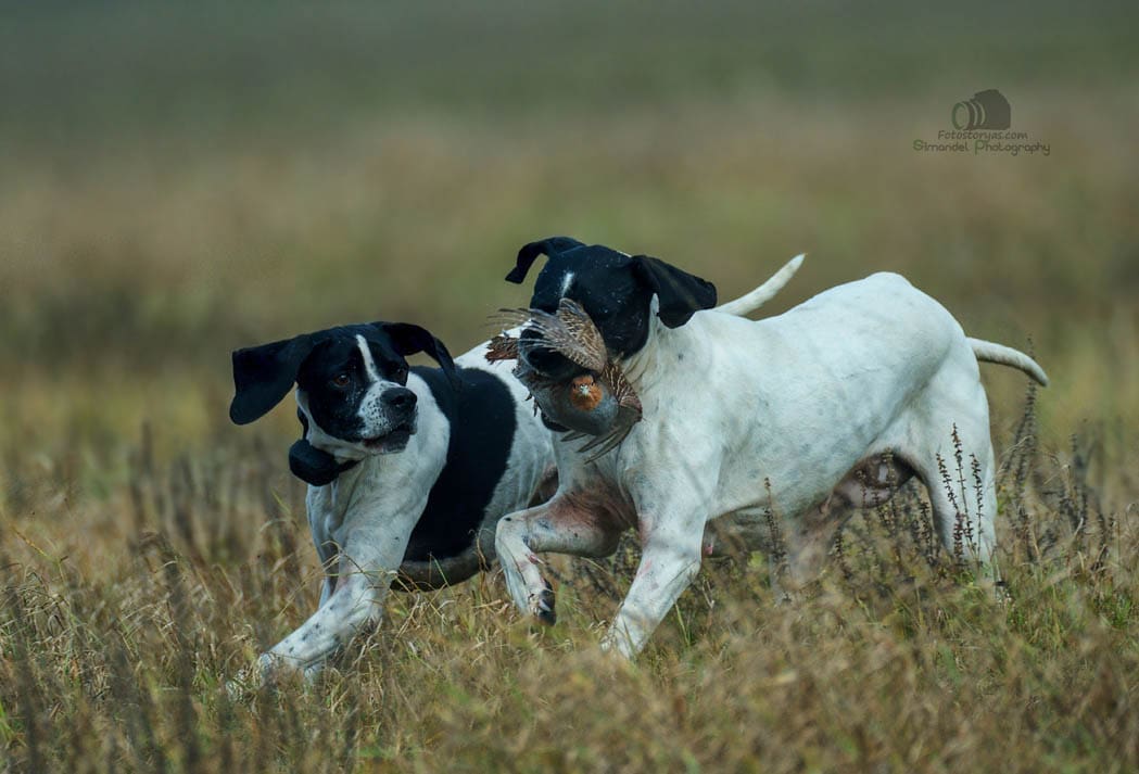 The partridges were exhibited by two local pointers, who warned shooters, where the hidden animal is. Their discipline and poses during exhibiting evoked in us speechless amazement. The caught partridges were traced and then brought by our retrievers. After the first two rounds was a break for refreshments and short rest. Two more rounds followed, in which the hunting terrain was searched again, while other pieces of flying partridges were caught. This was followed by the final act of honoring the hunted animals.