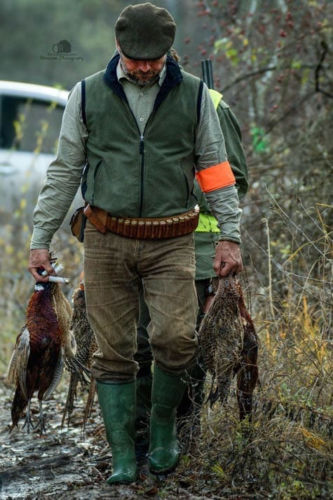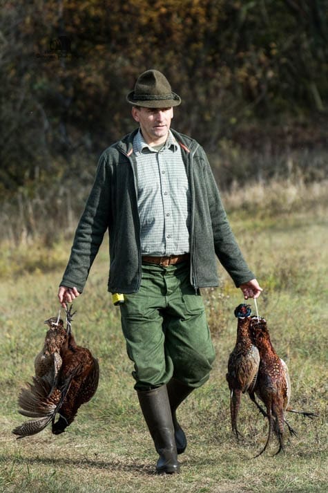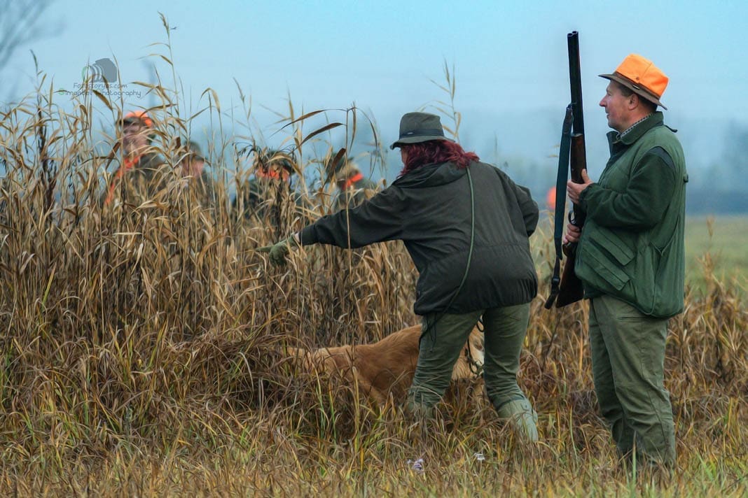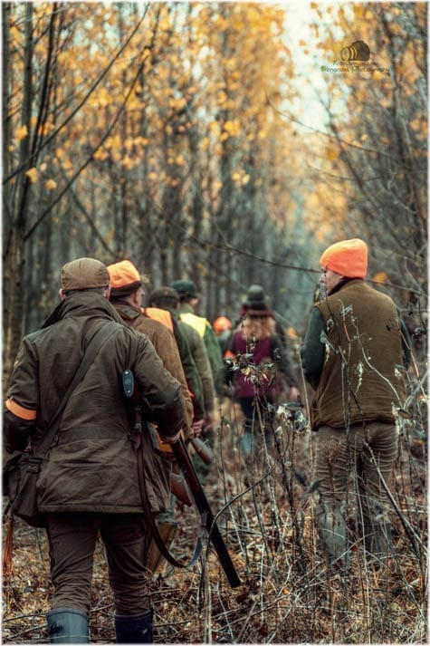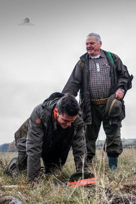 The next morning we started with a hearty breakfast and after writing all the participants in the local hunting book, we moved to the place of hunting. The local hunter informed us that hunting will be in the style of English hunting, he taught us about safety rules and we started hunting around nine in the morning. We were in one long line, dog handlers with their four-legged pets among the shooters and we slowly proceed through the terrain.