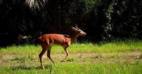 Male white-tailed deer photographed via trail camera at Corkscrew Marsh in Southwest Florida on July 21, 2016.