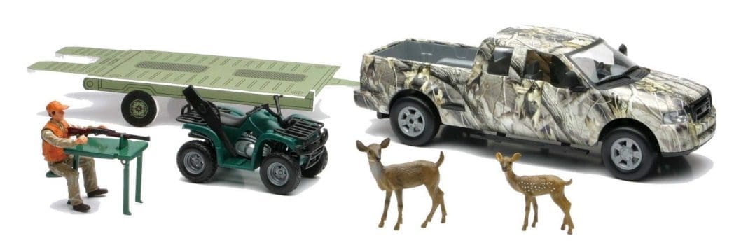 Wild Hunting Playset Camo Pick-Up Truck w/ ATV or Jon Boat on Trailer